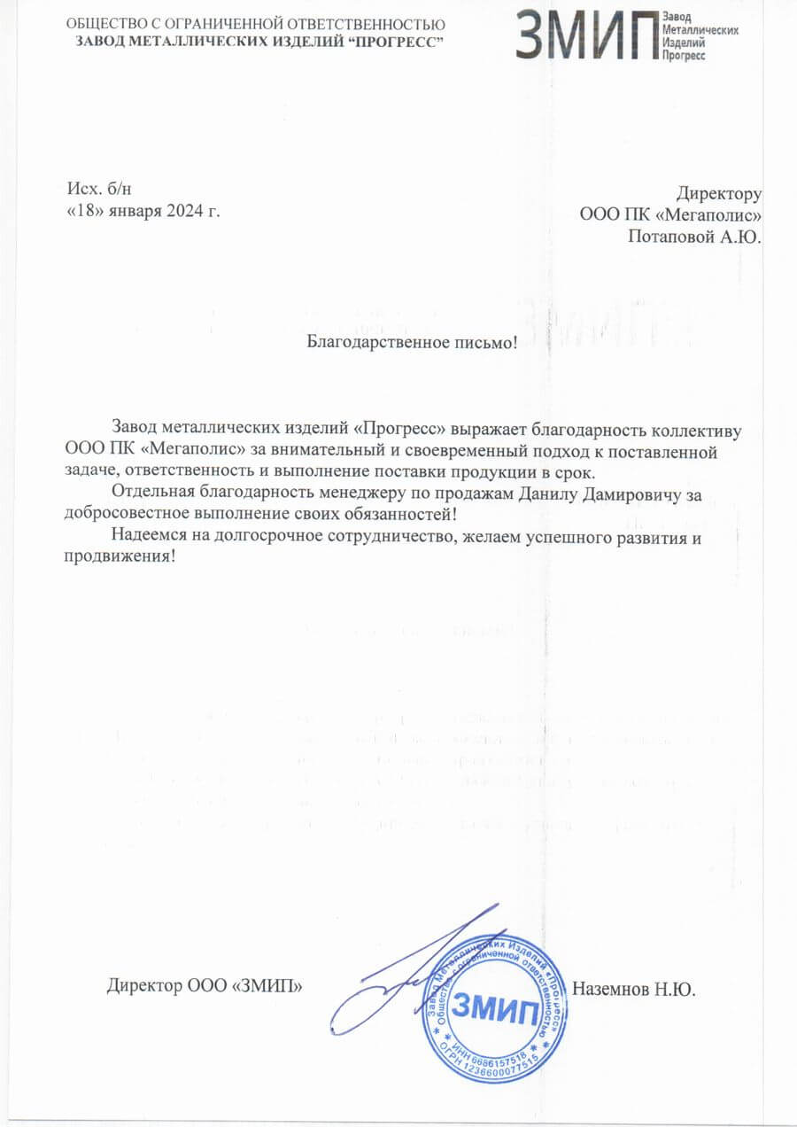 На сегодня уже более 10 тысяч клиентов выбрали Производственную Компанию «Мегаполис» в качестве поставщика металлопроката за её репутацию и надежность партнерских отношений.